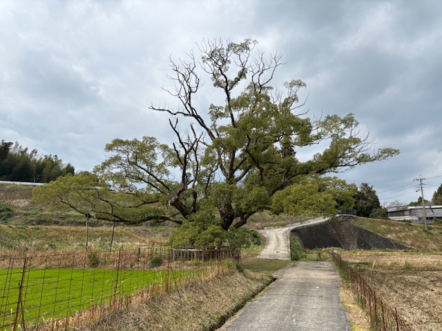 神社から少し離れた田んぼの真ん中に、そのオオクスはありました。この田んぼも春日神社の敷地みたいです。